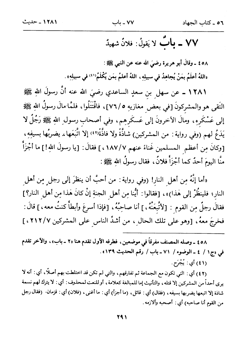 77 - بابٌ لا يَقولُ: فلان شهيد
