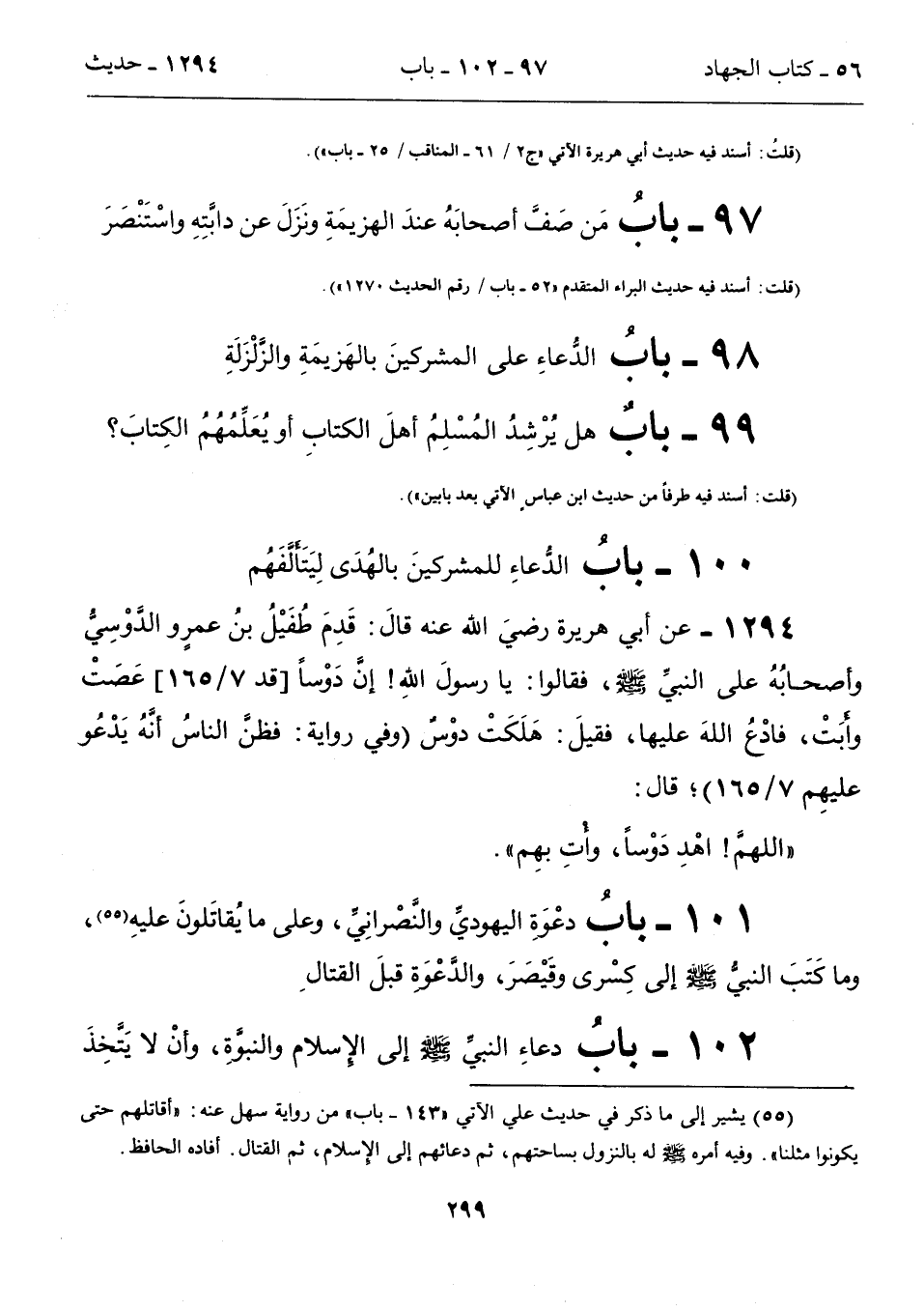 101 - بابُ دعْوَةِ اليهوديَ والنَصْرانِي، وعلى ما يُقاتَلونَ عليهِ (55)، وما كَتَبَ النبي - صلى الله عليه وسلم - إلى كِسْرى وقَيْصَرَ، والدعْوَة قبلَ القتالِ