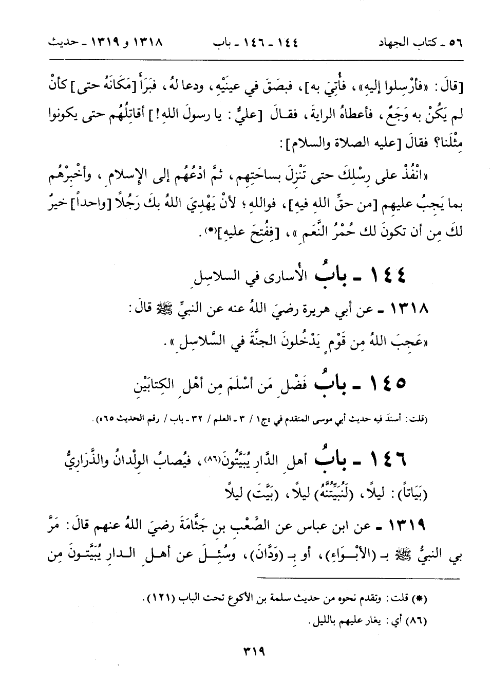 146 - بابُ أهلِ الدَّارِ يُبَيَّتُونَ (86)، فيُصابُ الوِلْدانُ والذَّرَارِيُّ (بَيَاتاً): ليلاً، (لَنُبَيِّتُنَّهُ) ليلاً، (بَيَّتَ) ليلاً