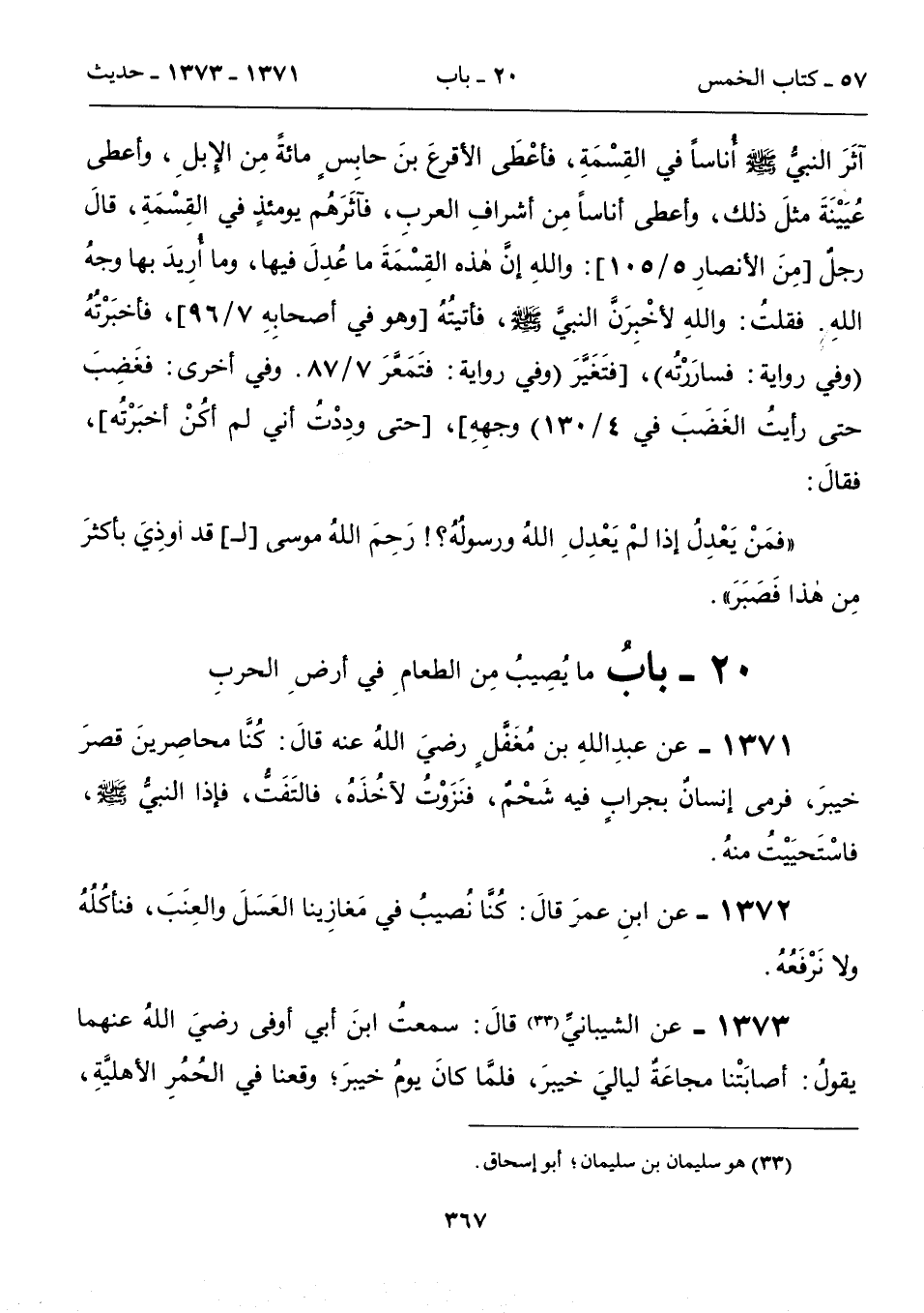 1372 - عن ابنِ عمر قالَ: كُنَّا نُصيبُ في مَغازِينا العَسَلَ والعِنَبَ، فنأكُلُهُ ولا نَرْفَعُهُ.