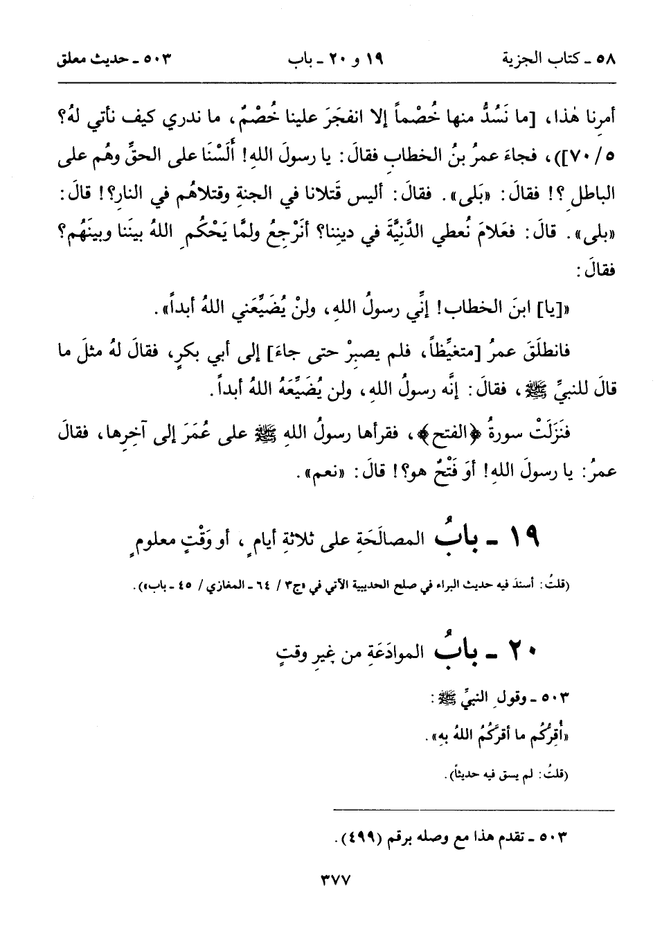 19 - بابُ المصالَحَةِ على ثلاثةِ أيامٍ، أو وَقْتٍ معلومٍ