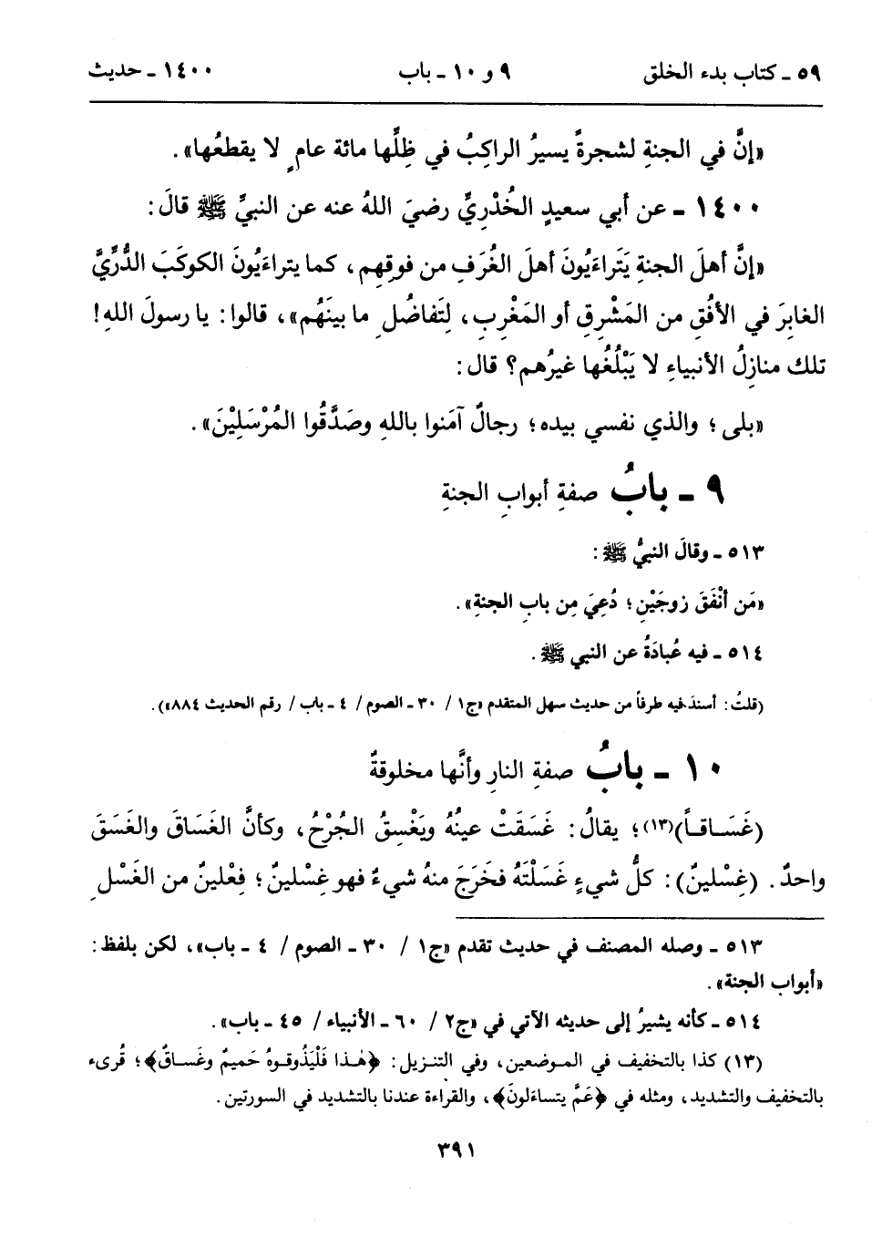 10 - بابُ صفةِ النارِ وأنَّها مخلوقةٌ