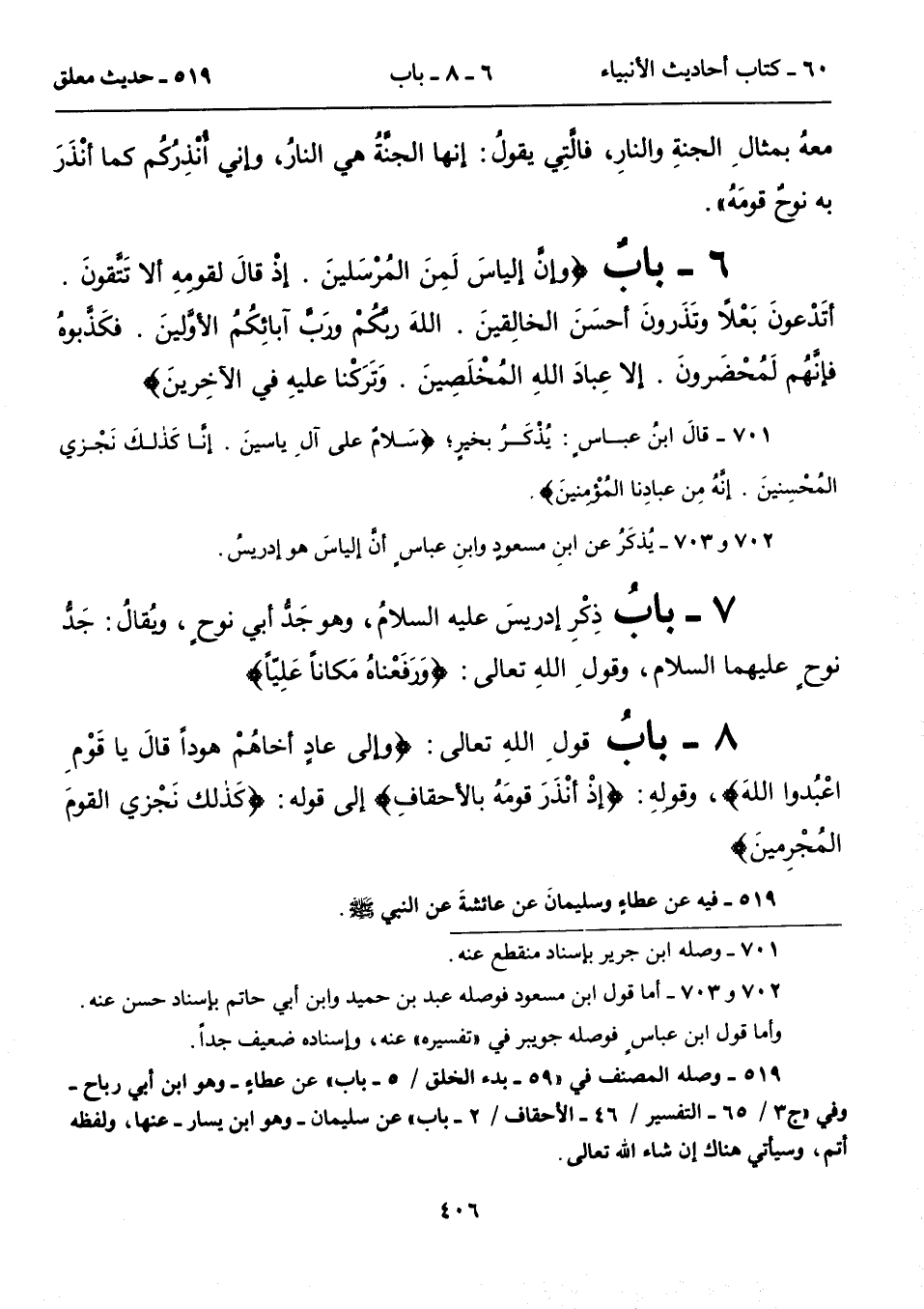 7 - بابُ ذِكْرِ إدريسَ عليه السلامُ، وهو جَدُّ أبي نوحٍ، ويُقالُ: جَدُّ نوحٍ عليهما السلام، وقولِ اللهِ تعالى: {وَرَفَعْنَاهُ مَكَانًا عَلِيّاً}