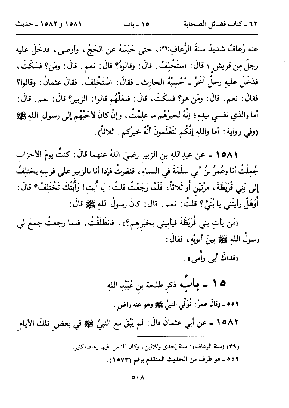 15 - بابُ ذكرِ طلحةَ بنِ عُبَيْدِ اللهِ