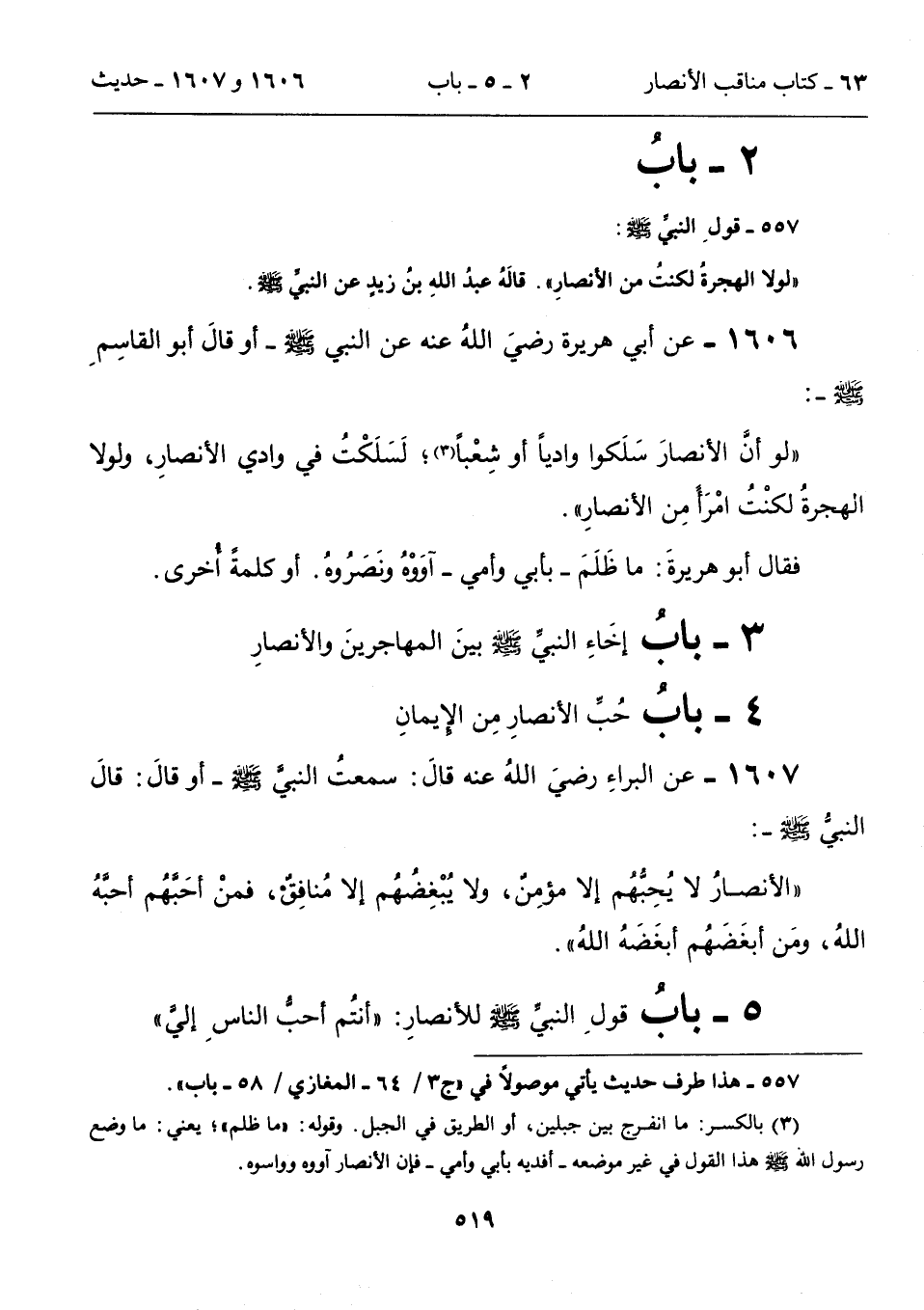 5 - بابُ قولِ النبىِّ للأنصارِ: "أنتُم أحبُّ الناسِ إلي"