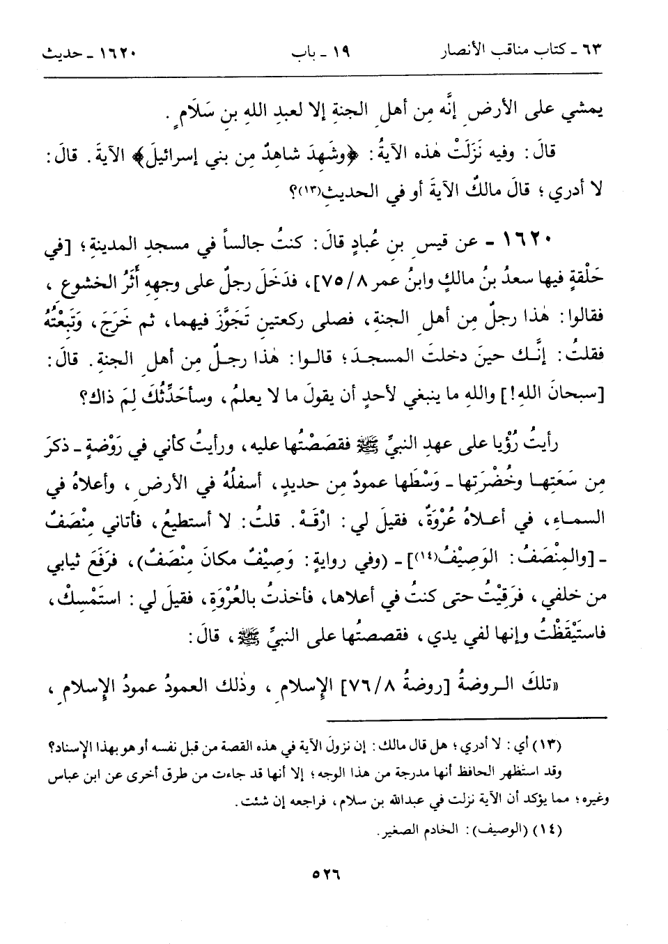 "تلكَ الروضةُ [روضةُ 8/ 76] الِإسلامِ، وذلك العمودُ عمودُ الإسلامِ,