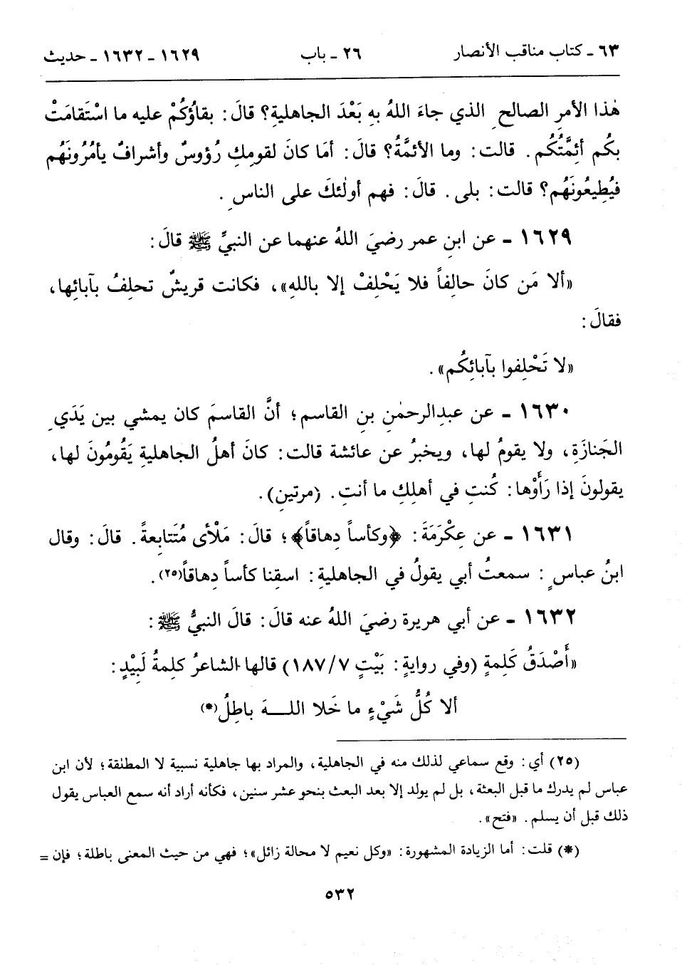 (25) أي: وقع سماعي لذلك منه في الجاهلية، والمراد بها جاهلية نسبية لا المطلقة؛ لأن ابن عباس لم يدرك ما قبل البعثة، بل لم يولد إلا بعد البعث بنحو عمر سنين، فكأنه أراد أنه سمع العباس يقول ذلك قبل أن يسلم. "فتح".