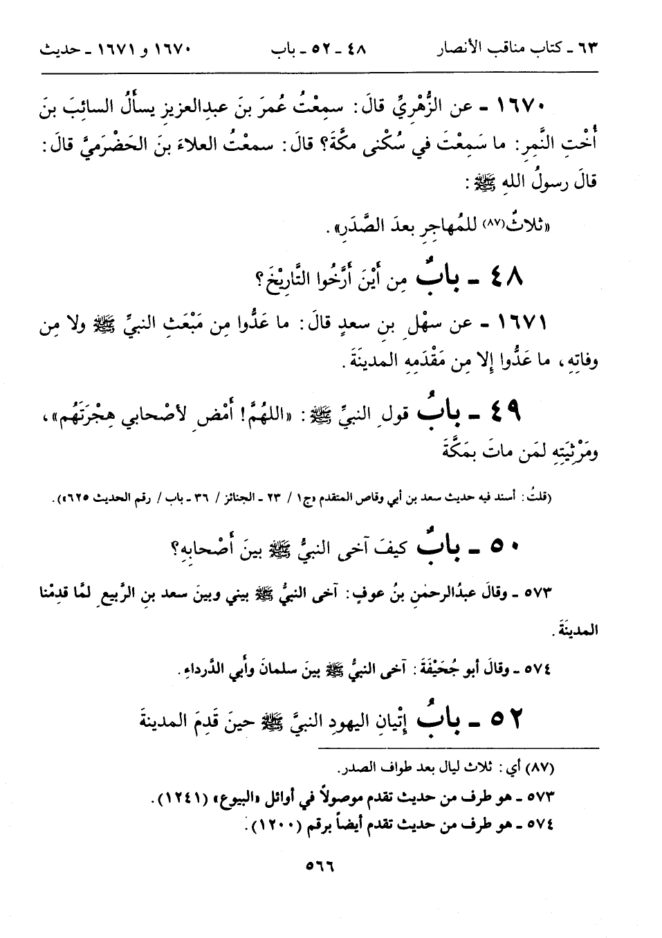 573 - وقالَ عبدُ الرحمنِ بنُ عوفٍ: آخى النبيُّ - صلى الله عليه وسلم - بيني وبينَ سعد بنِ الرَّبيعِ لمَّا قدِمْنا المدينَةَ.