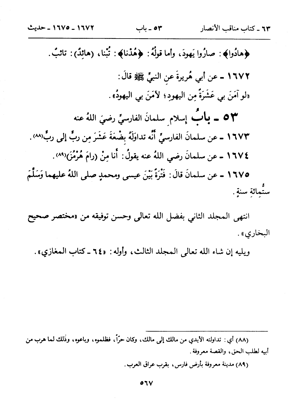 ويليه إن شاء الله تعالى المجلد الثالث، وأوله: "64 - كتاب المغازي".