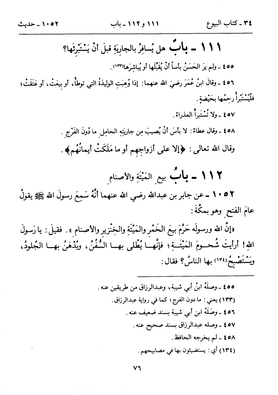 455 - ولم يرَ الحَسَنُ بأساً أنْ يُقَبِّلَها أو يُباشِرَها (133).