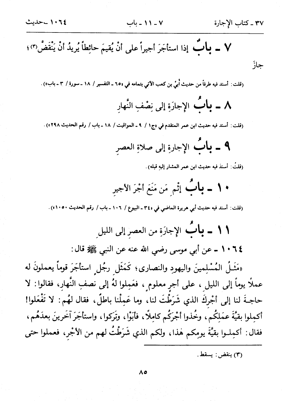 7 - بابٌ إذا استأجَرَ أجيراً على أنْ يُقيمَ حائِطاً يُريدُ أنْ يَنْقَضَّ (3)؛ جازَ