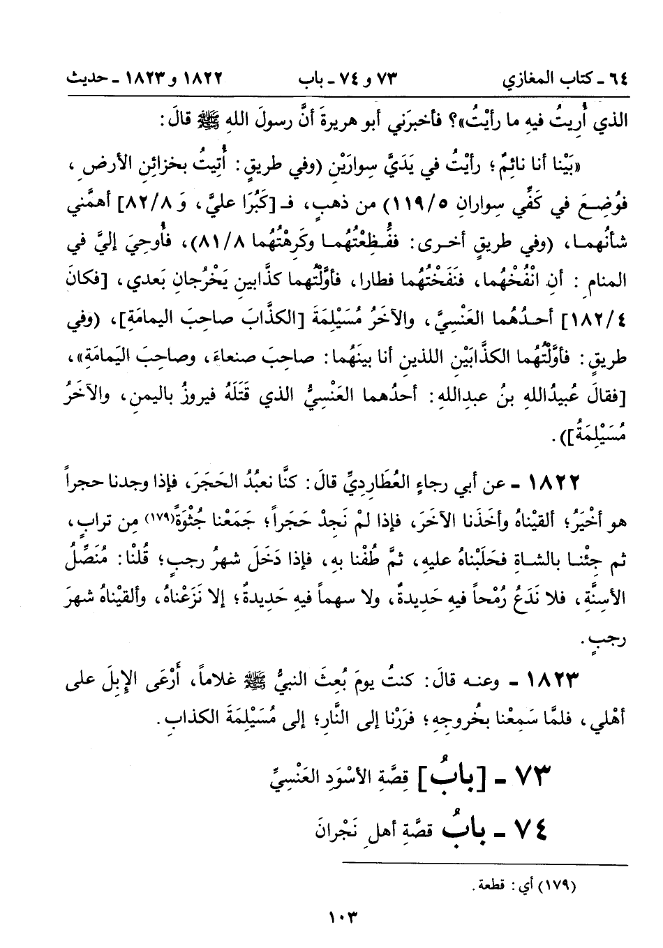 73 - [بابُ] قِصَّةِ الأسْوَدِ العَنْسِيِّ