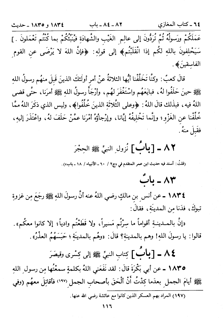 82 - [بابُ] نُزولِ النبيِّ - صلى الله عليه وسلم - الحِجْرَ