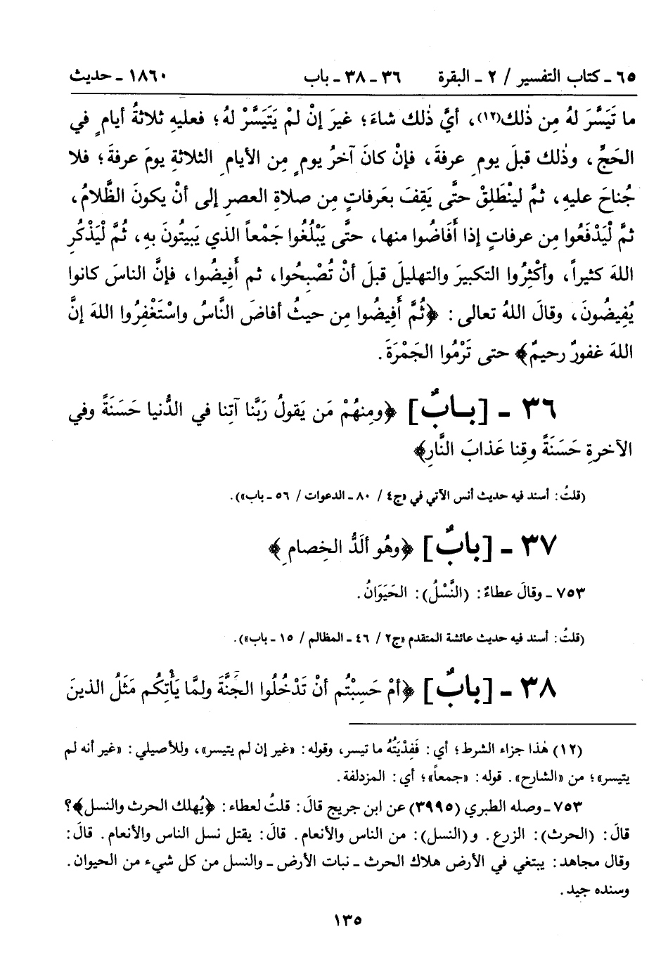 753 - وصله الطبري (3995) عن ابن جريج قالَ: قلتُ لعطاء: {يُهلك الحرث والنسل}؟ قالَ: (الحرث): الزرع. و (النسل): من الناس والأنعام. قالَ: يقتل نسل الناس والأنعام. قالَ: وقال مجاهد: يبتغي في الأرض هلاك الحرث -نبات الأرض- والنسل من كلَّ شيء من الحيوان. وسنده جيد.