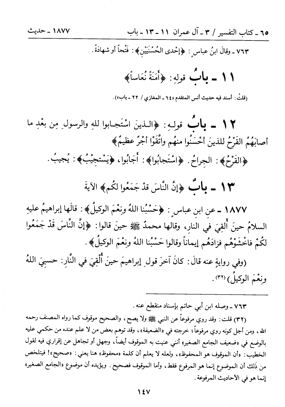 13 - بابٌ {إنَّ النَّاسَ قدْ جَمَعُوا لكُم} الآيةَ