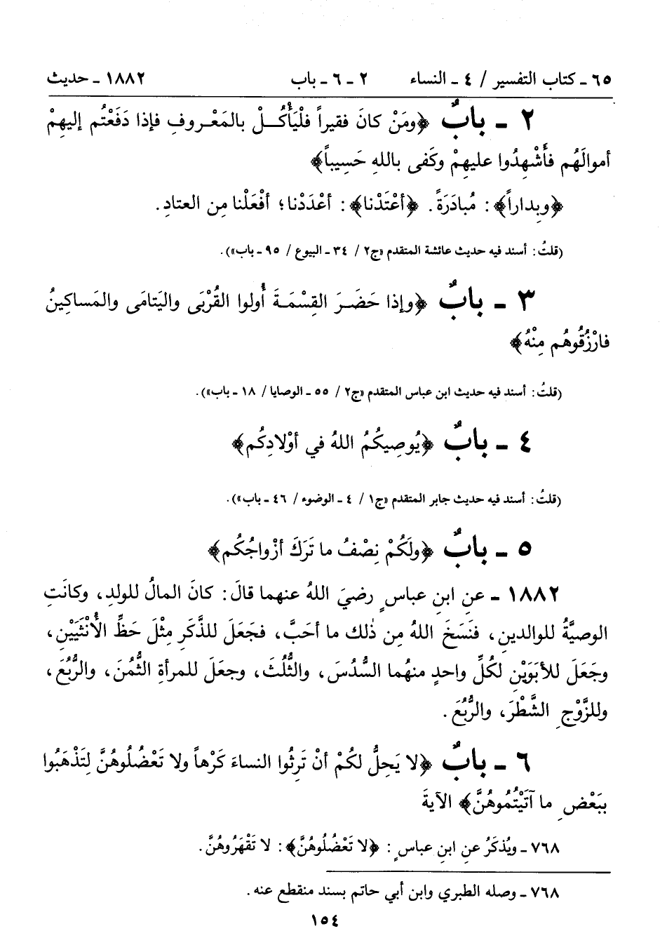1882 - عنِ ابنِ عباسٍ رضيَ اللهُ عنهما قالَ: كَانَ الْمَالُ لِلْوَلَدِ، وَكَانَتِ الْوَصِيَّةُ لِلْوَالِدَيْنِ، فَنَسَخَ اللَّهُ مِنْ ذَلِكَ مَا أَحَبَّ، فَجَعَلَ لِلذَّكَرِ مِثْلَ حَظِّ الأُنْثَيَيْنِ، وَجَعَلَ لِلأَبَوَيْنِ لِكُلِّ وَاحِدٍ مِنْهُمَا السُّدُسَ، وَالثُّلُثَ، وَجَعَلَ لِلْمَرْأَةِ الثُّمُنَ، وَالرُّبُعَ، وَلِلزَّوْجِ الشَّطْرَ وَالرُّبُعَ.