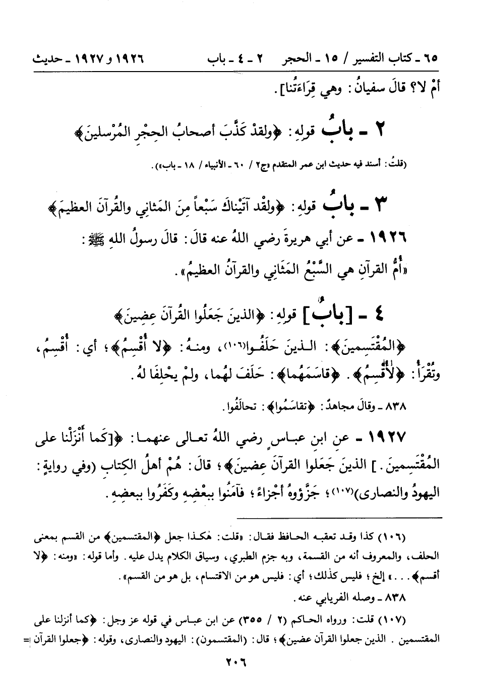 4 - [بابُ] قولهِ: {الذينَ جَعَلُوا القُرآنَ عِضِينَ}