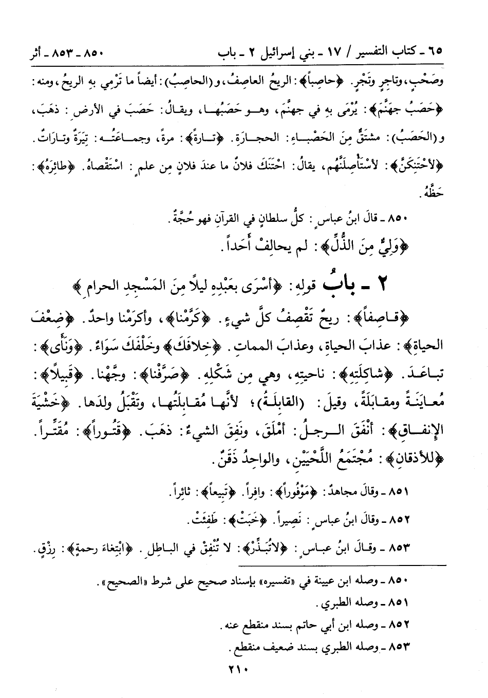 850 - وصله ابن عيينة في "تفسيره" بإسناد صحيح على شرط "الصحيح".