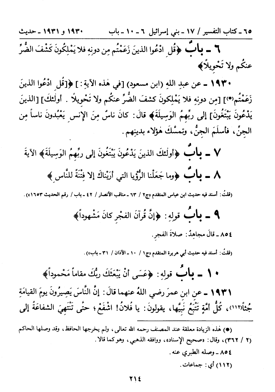 9 - بابُ قولهِ: {إنَّ قُرآنَ الفجْرِ كانَ مَشْهوداً}