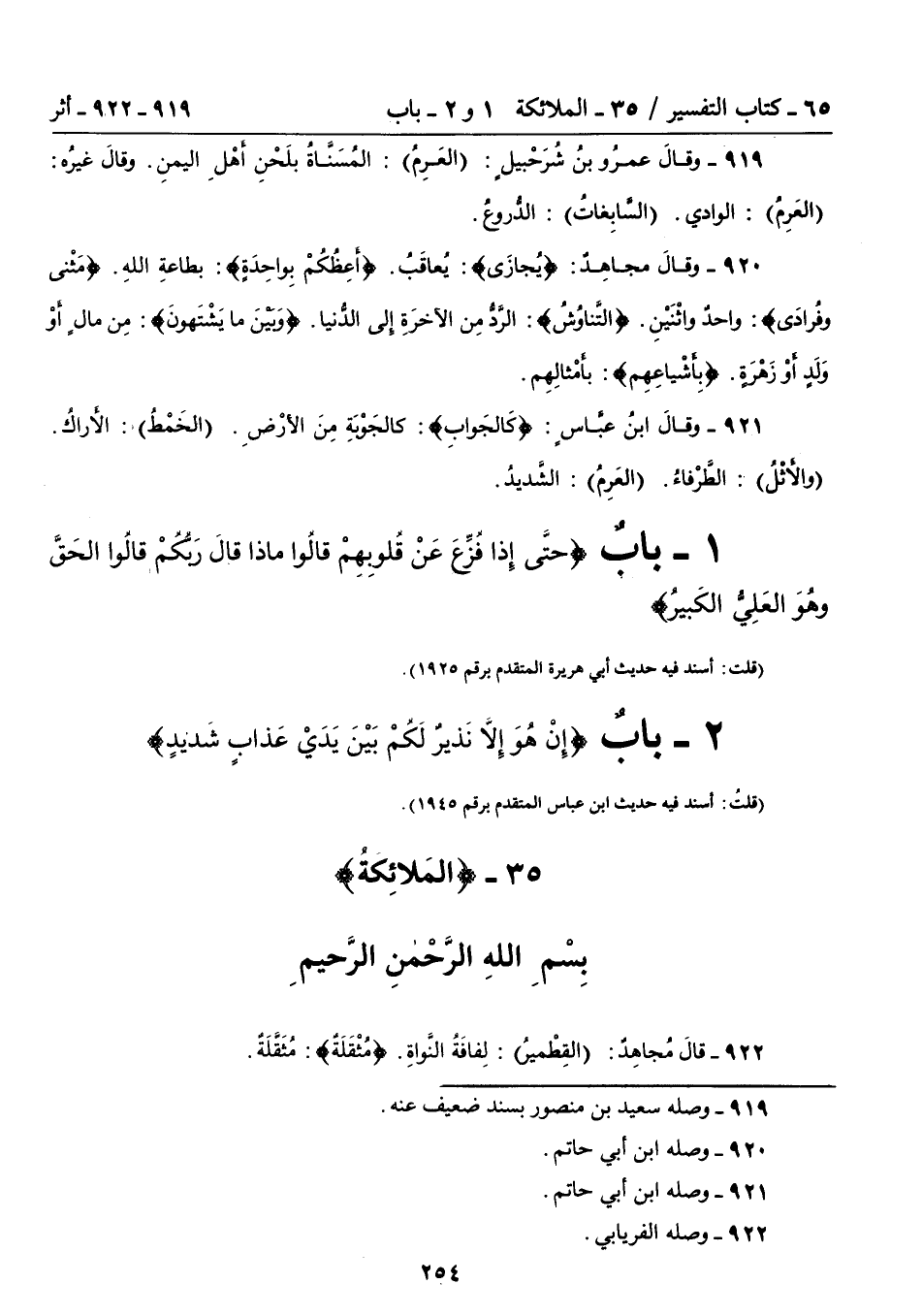1 - بابٌ {حَتَّى إِذَا فُزِّعَ عَنْ قُلُوبِهِمْ قَالُوا مَاذَا قَالَ رَبُّكُمْ قَالُوا الْحَقَّ وَهُوَ الْعَلِيُّ الْكَبِيرُ}