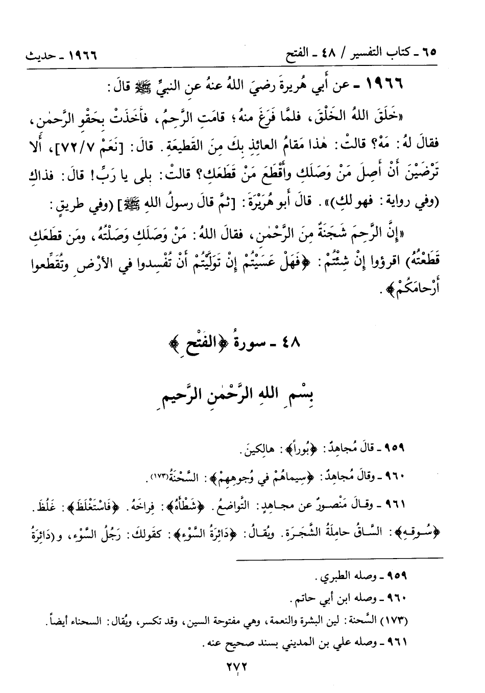 965 - وقالَ مُجاهِدٌ: {سِيماهمْ في وُجوهِهِمْ}: السَّحْنَةُ (173).