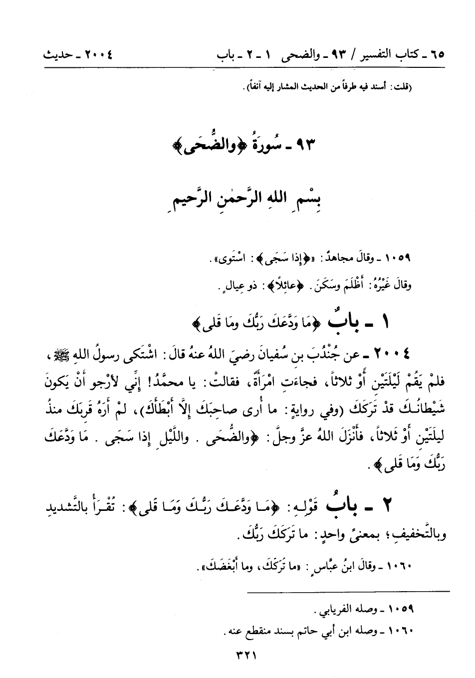 1 - بابٌ {مَا وَدَّعَكَ رَبُّكَ وَمَا قَلَى}