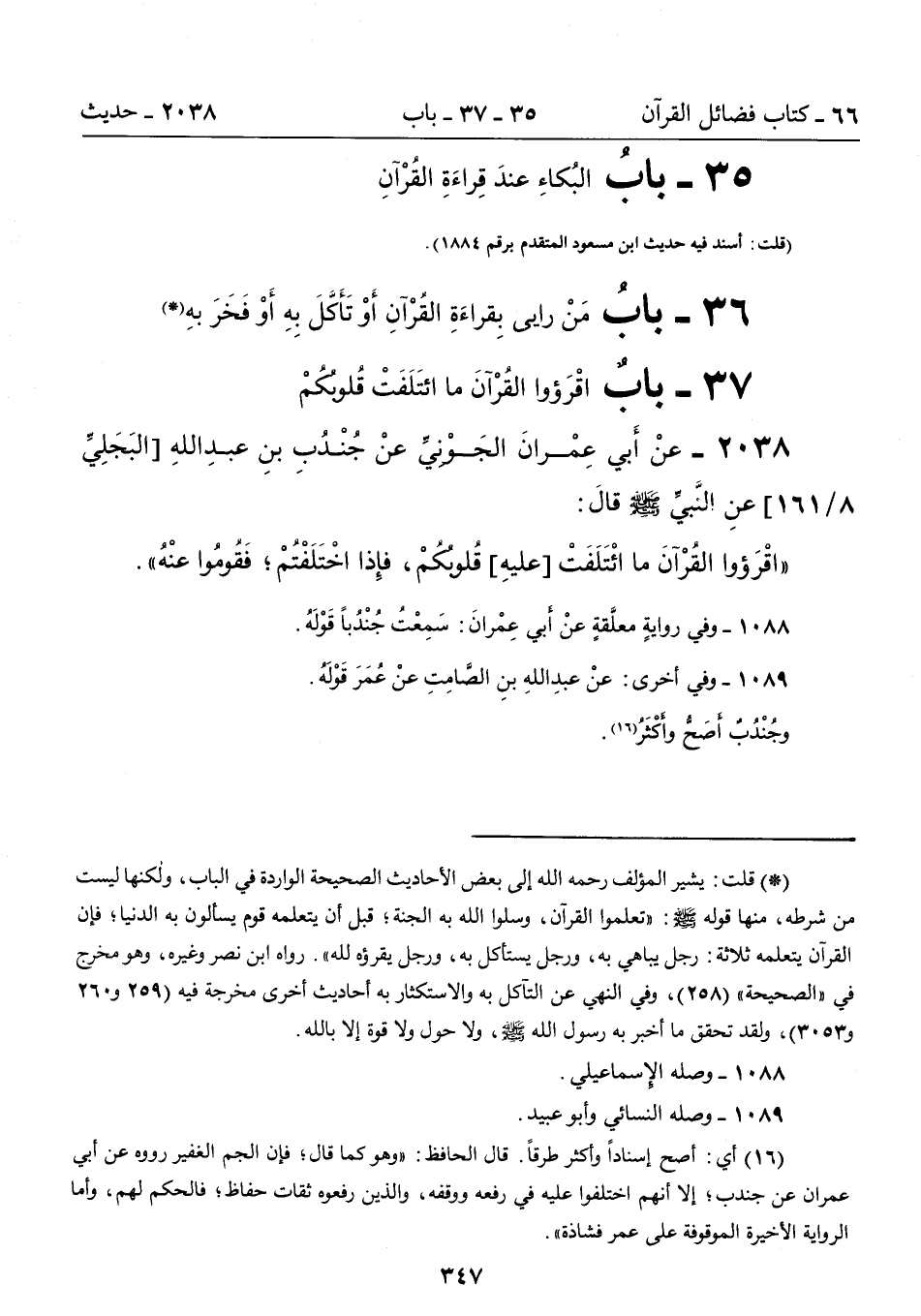 37 - بابٌ اقْرَؤوا القُرْآنَ ما ائتَلَفَتْ قُلوبُكُمْ