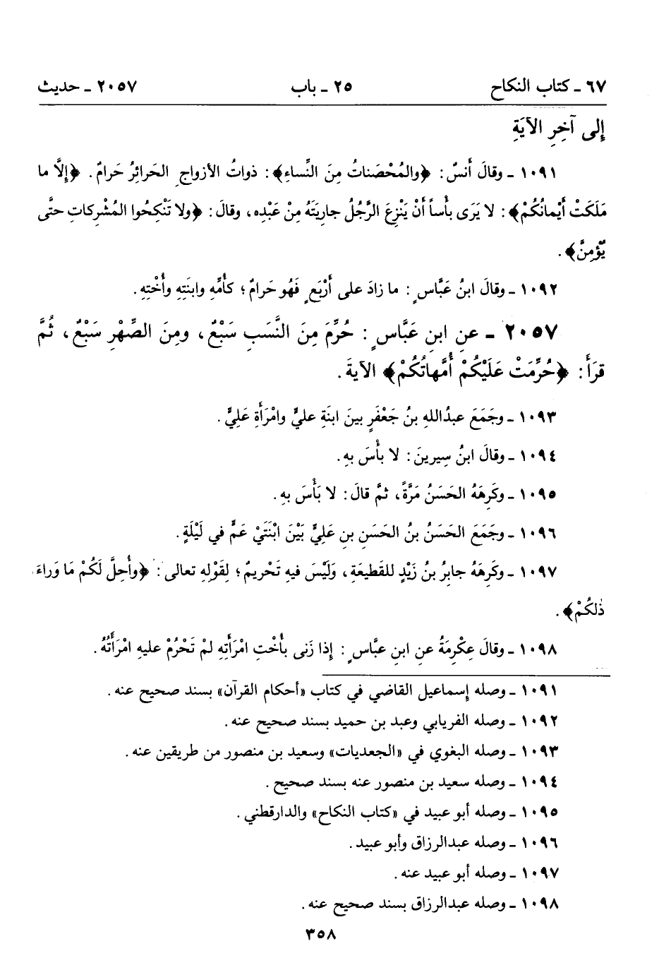 1092 - وقالَ ابنُ عَبَّاسٍ: ما زادَ على أرْبَعٍ فَهُو حَرامٌ؛ كأُمِّهِ وابنَتِهِ وأُخْتِهِ.