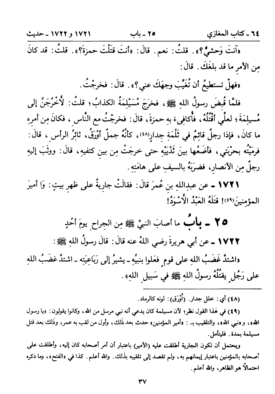 25 - بابُ ما أصابَ النبيَّ - صلى الله عليه وسلم - من الجِراحِ يومَ أحُدٍ