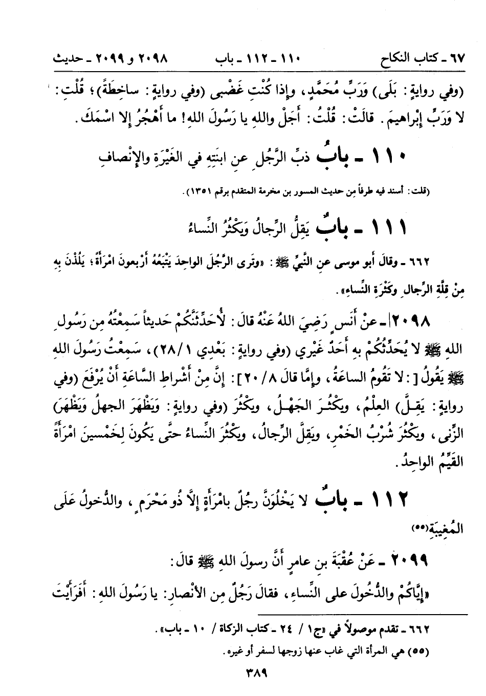 112 - بابٌ لا يَخْلُوَنَّ رجُلٌ بامْرَأةٍ إِلَّا ذُو مَحْرَم، والدُّخولُ عَلَى المُغِيبَةِ (55)