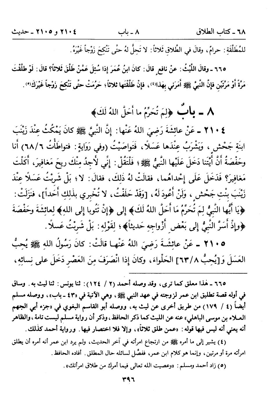 8 - بابٌ {لِمَ تُحَرِّمُ ما أَحَلَّ اللهُ لَكَ}