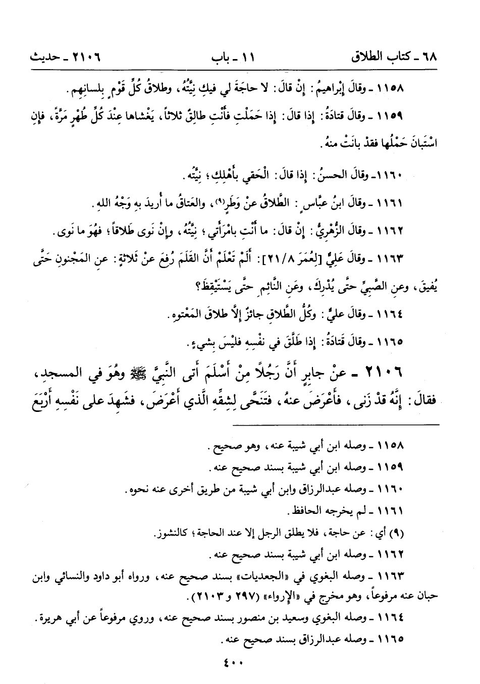 1158 - وَقَالَ إِبْرَاهِيمُ: إِنْ قَالَ: لاَ حَاجَةَ لِي فِيكِ نِيَّتُهُ، وَطَلاَقُ كُلِّ قَوْمٍ بِلِسَانِهِم.