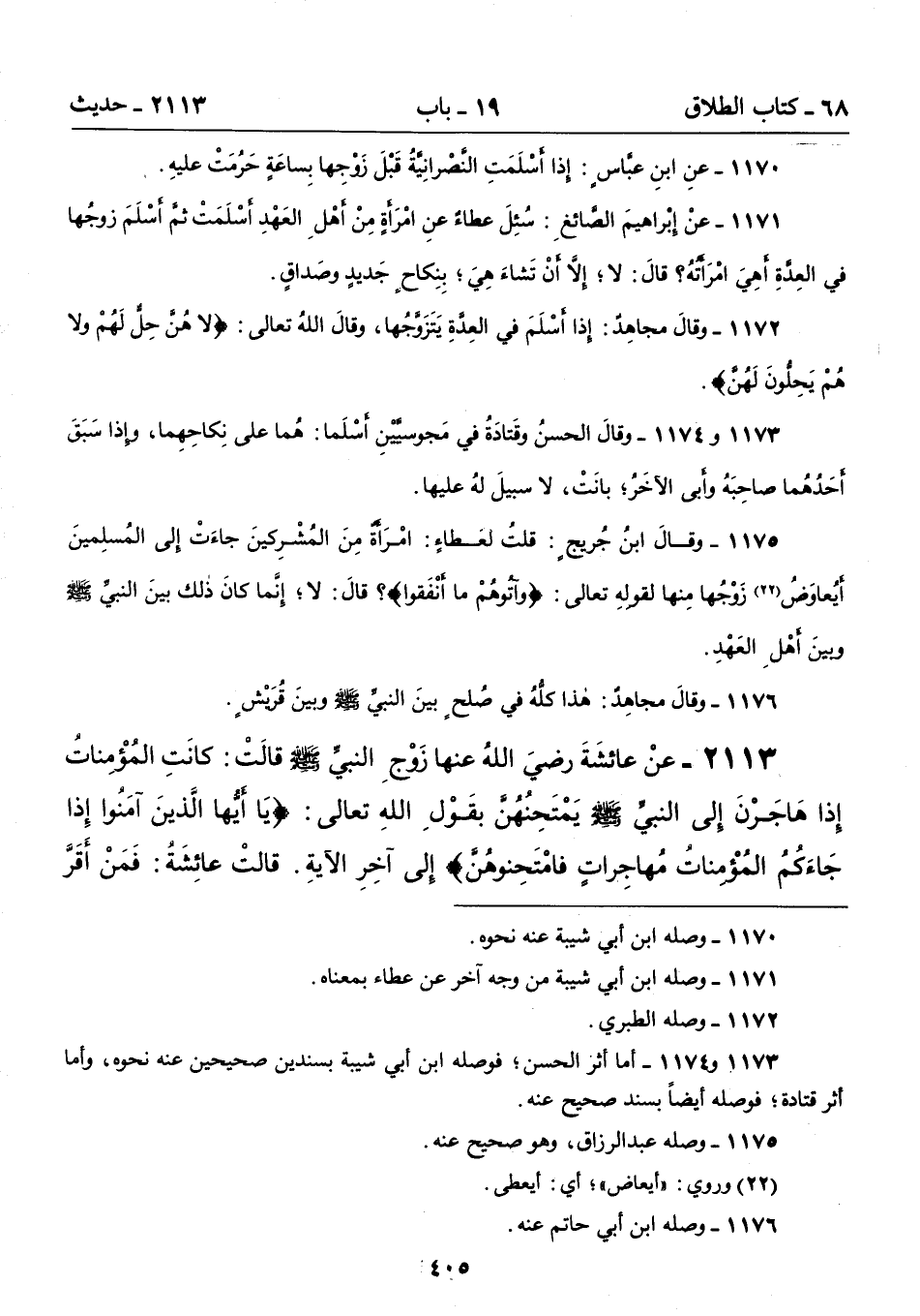 1170 - عَنِ ابْنِ عَبَّاسٍ: إِذَا أَسْلَمَتِ النَّصْرَانِيَّةُ قَبْلَ زَوْجِهَا بِسَاعَةٍ حَرُمَتْ عَلَيْهِ.