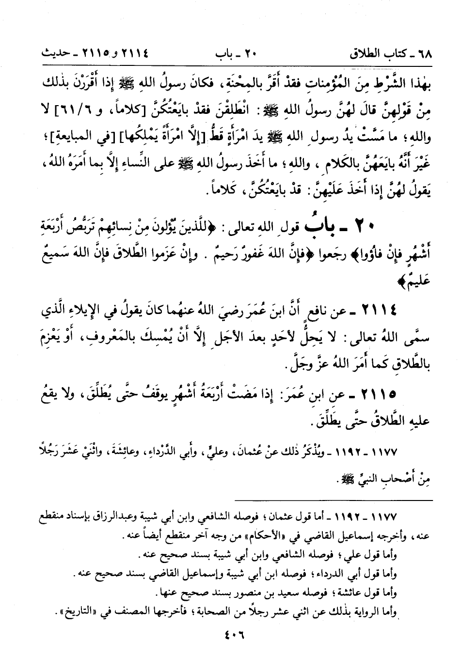 1177 - 1192 - وَيُذْكَرُ ذَلِكَ عَنْ عُثْمَانَ، وَعَلِىٍّ، وَأَبِى الدَّرْدَاءِ، وَعَائِشَةَ، وَاثْنَىْ عَشَرَ رَجُلاً مِنْ أَصْحَابِ النَّبِيِّ - صلى الله عليه وسلم -.