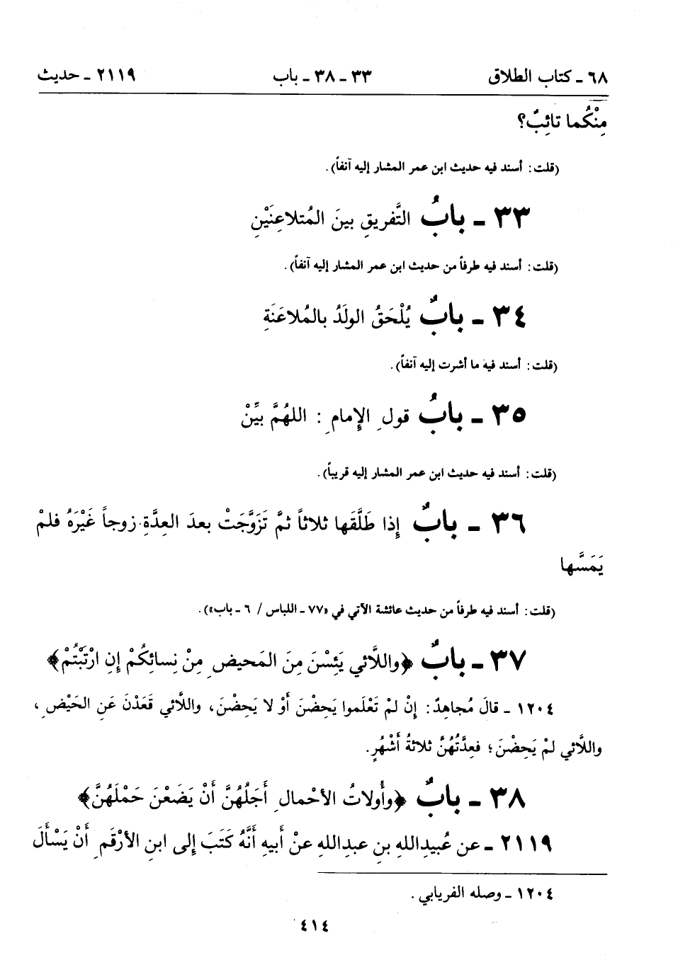 33 - بابُ التَّفريقِ بينَ المُتلاعِنَيْنِ