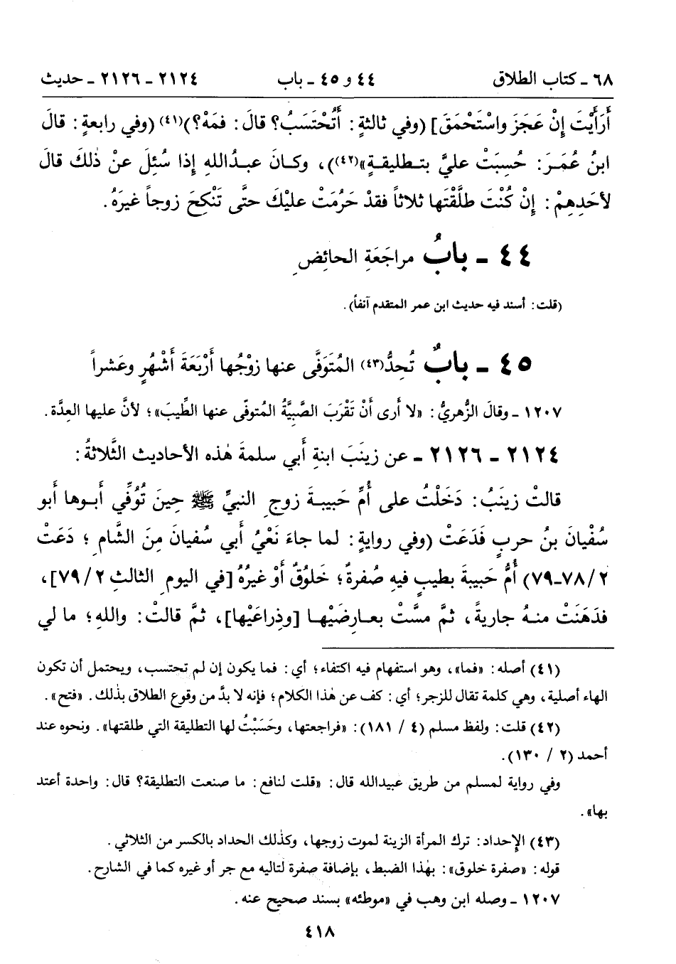 45 - بابٌ تُحِدُّ (43) المُتَوَفَّى عنها زوْجُها أَربَعَةَ أَشْهُرٍ وعَشراً