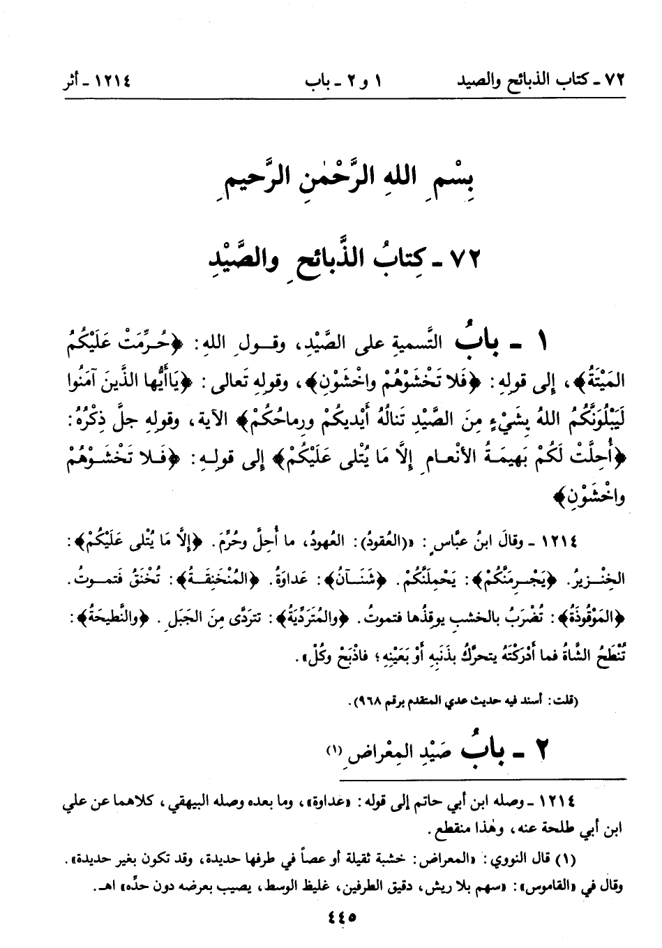 2 - بابُ صَيْدِ المِعْراضِ (1)