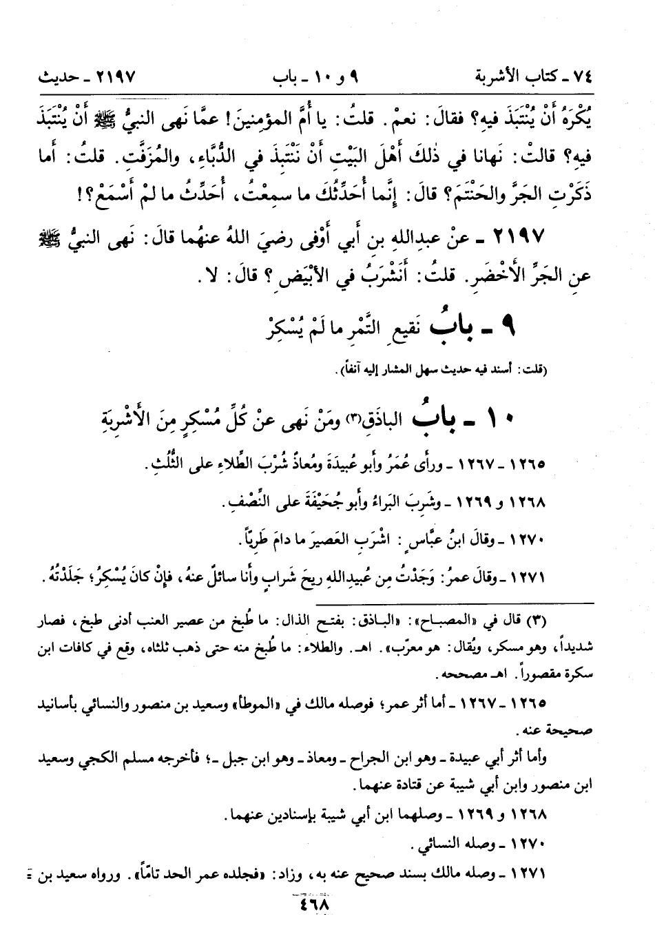 10 - بابُ الباذَقِ (3) ومَنْ نَهى عنْ كُلِّ مُسْكِرٍ مِنَ الأشْربَةِ