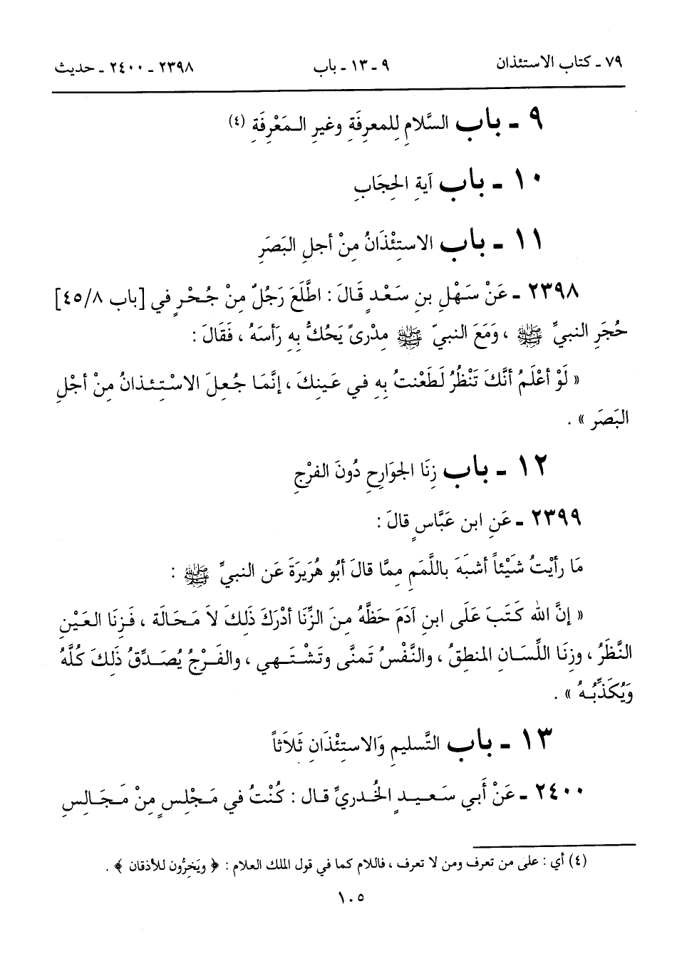 11 - باب الاستِئْذَانُ مِنْ أجلِ البَصَرِ