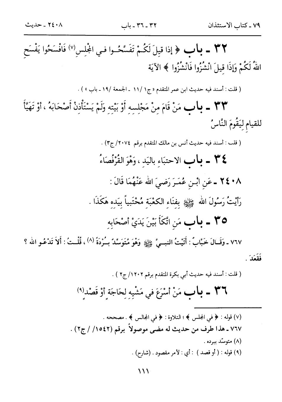 36 - باب مَنْ أسْرَعَ في مَشْيِهِ لِحَاجَةٍ أوْ قَصْدٍ (9)