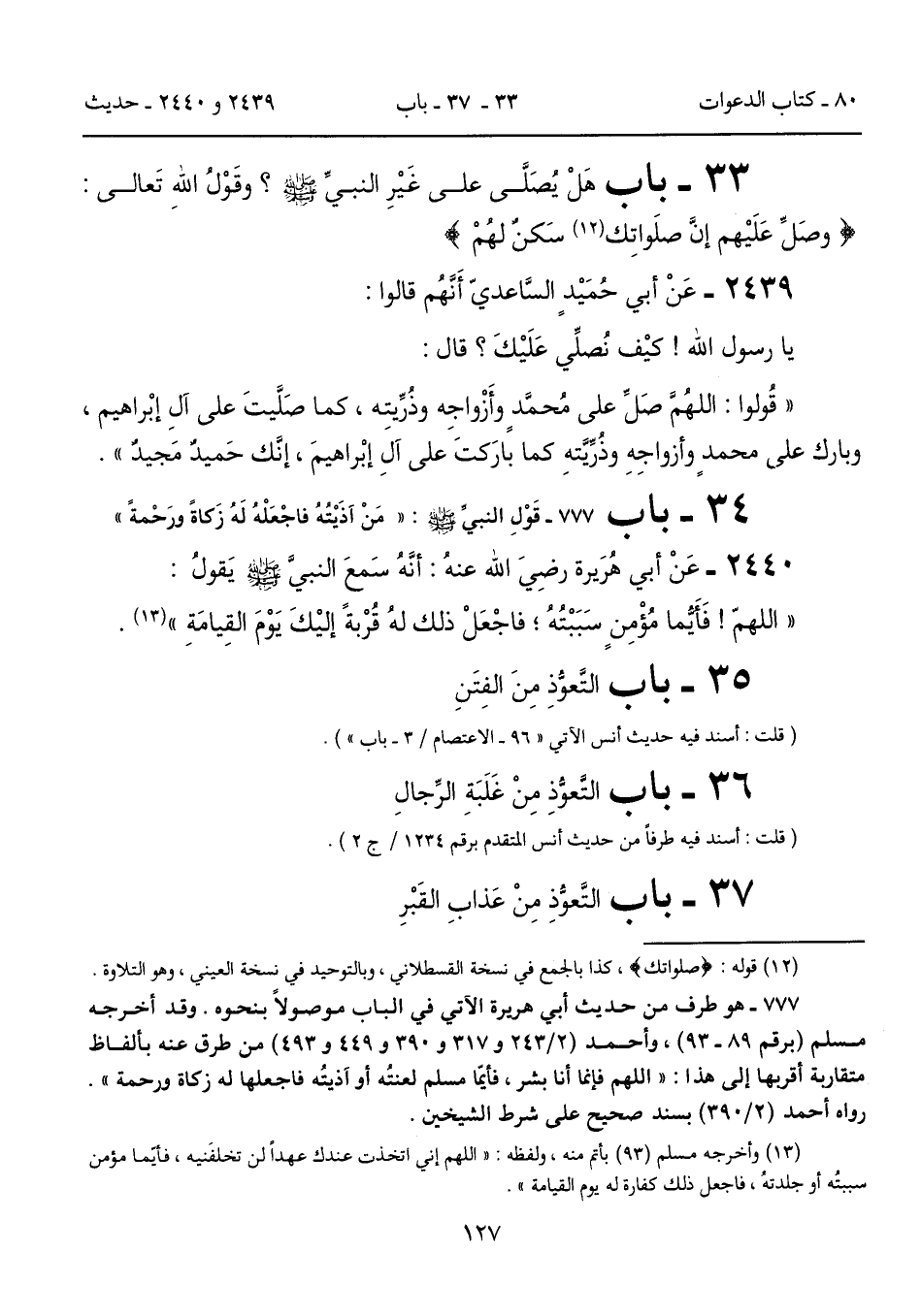 33 - باب هَلْ يُصَلَّى على غَيْرِ النبيِّ - صلى الله عليه وسلم -؟ وقَوْلُ الله تَعالى: (وصَلِّ عَلَيْهم إنَّ صلَواتِك (12) سَكنٌ لهُمْ)