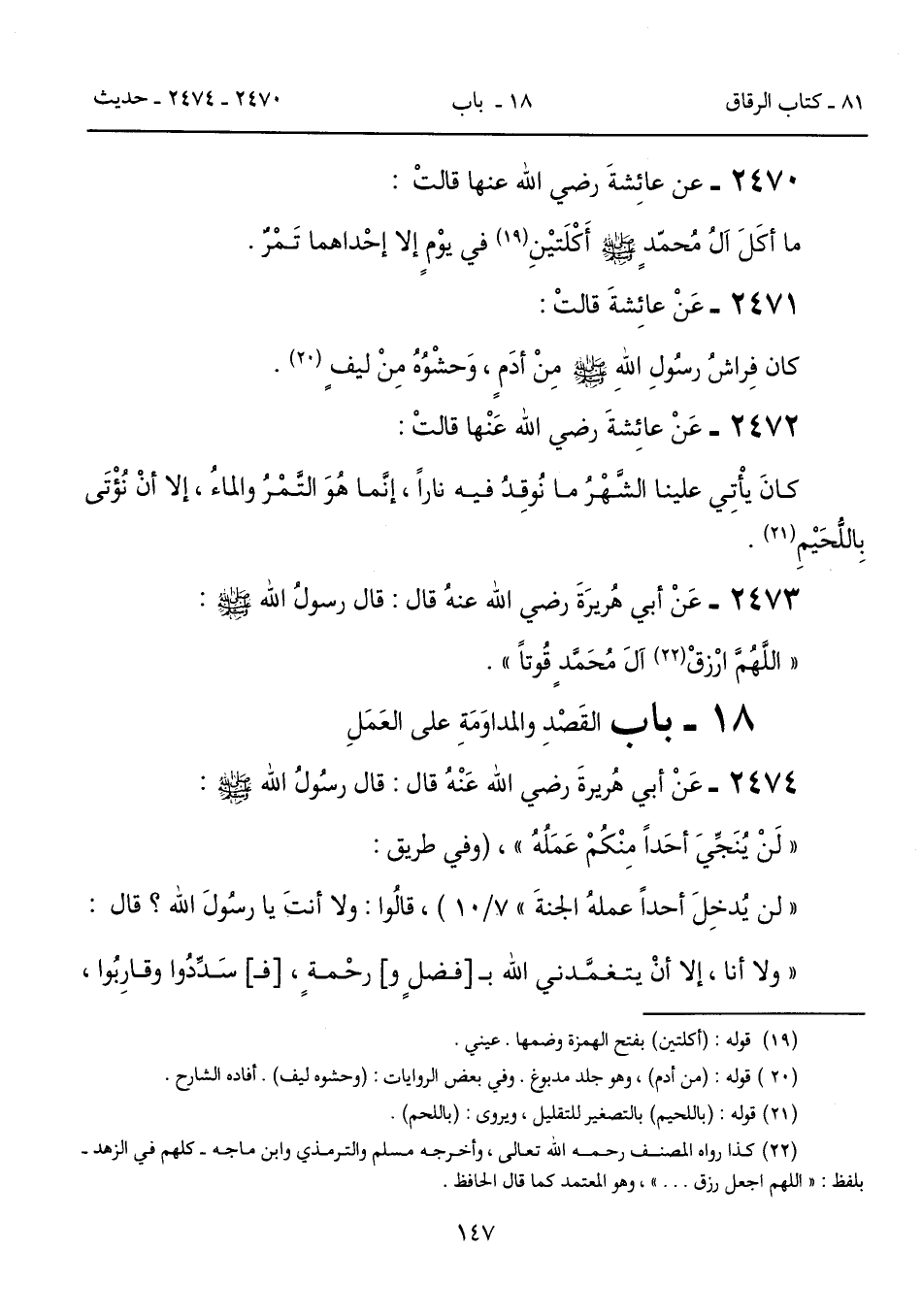 18 - باب القَصدِ والمداوَمَةِ على العَمَلِ