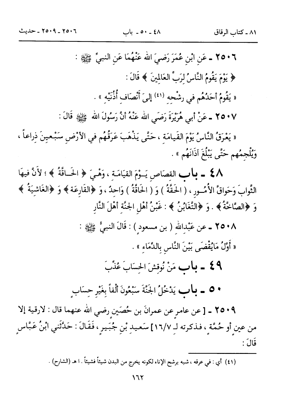 "يَقُومُ أحَدُهُم في رشْحِهِ (41) إلَى أَنْصَافِ أُذُنَيْهِ".