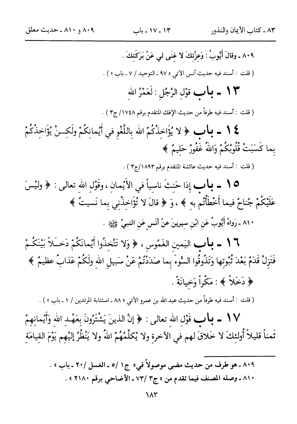 810 - رَواهُ أَيُّوبُ عَنِ ابْنِ سِيرينَ عنْ أنَسٍ عَنِ النبيِّ - صلى الله عليه وسلم -.
