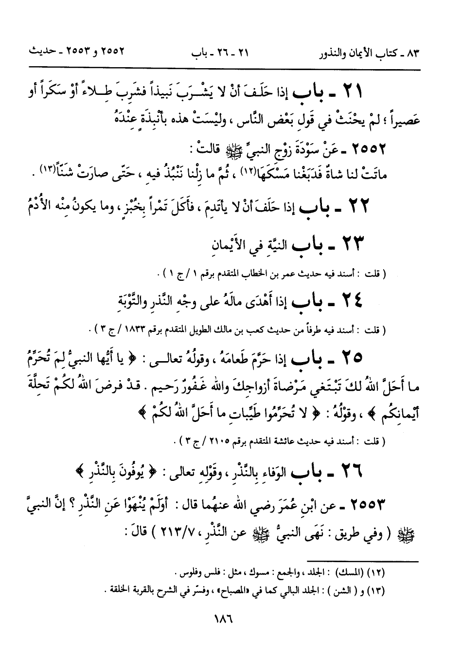 26 - باب الوَفاءِ بِالنَّذْرِ، وقَوْلِهِ تعالى: {يُوفُونَ بِالنَّذْرِ}