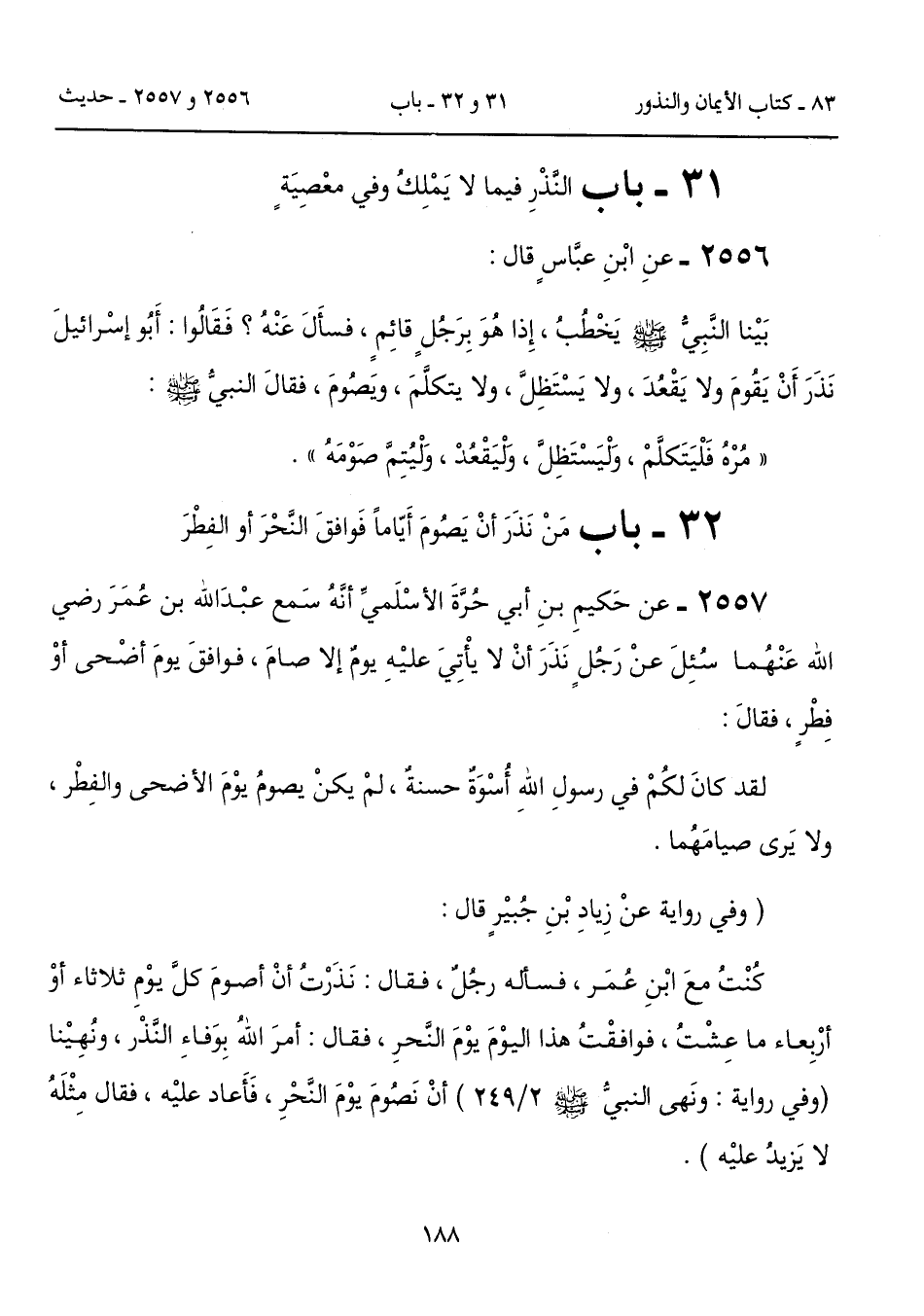 32 - باب مَنْ نَذَرَ أنْ يَصُومَ أَيّاماً فَوافقَ النَّحْرَ أو الفِطْرَ