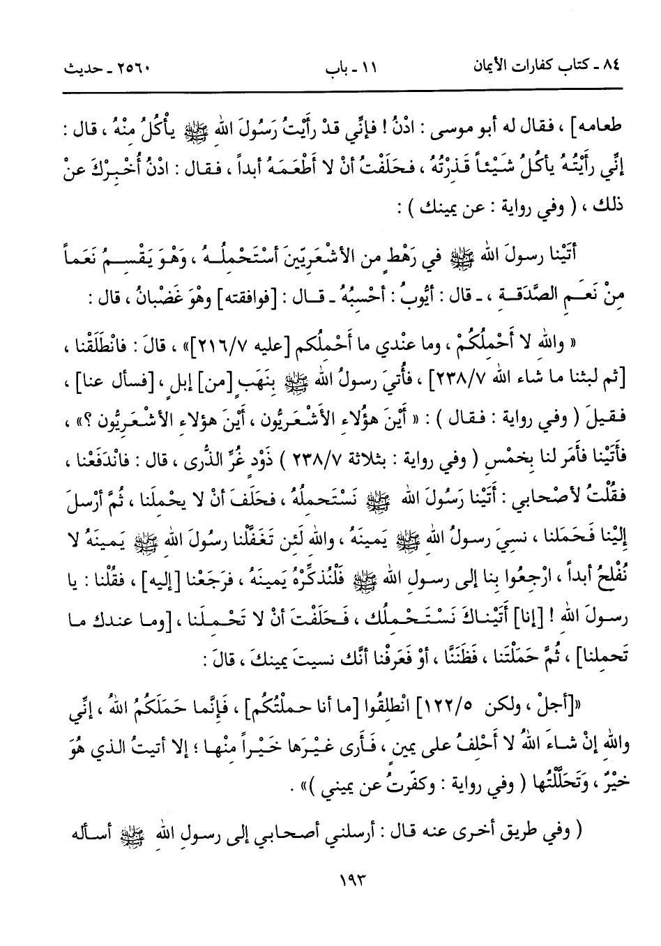 " [أجلْ، ولكن 5/ 122] انْطلِقُوا [ما أنا حملْتُكُم]، فَإِنَّما حَمَلَكُمُ اللهُ، إنِّي واللهِ إنْ شاءَ اللهُ لا أَحْلِفُ على يمينٍ، فَأَرى غيْرَها خَيْراً مِنْها؛ إلا أتيتُ الذي هُوَ خيْرٌ، وَتَحَلَّلْتُها (وفي روايةٍ: وكفّرتُ عن يميني) ".