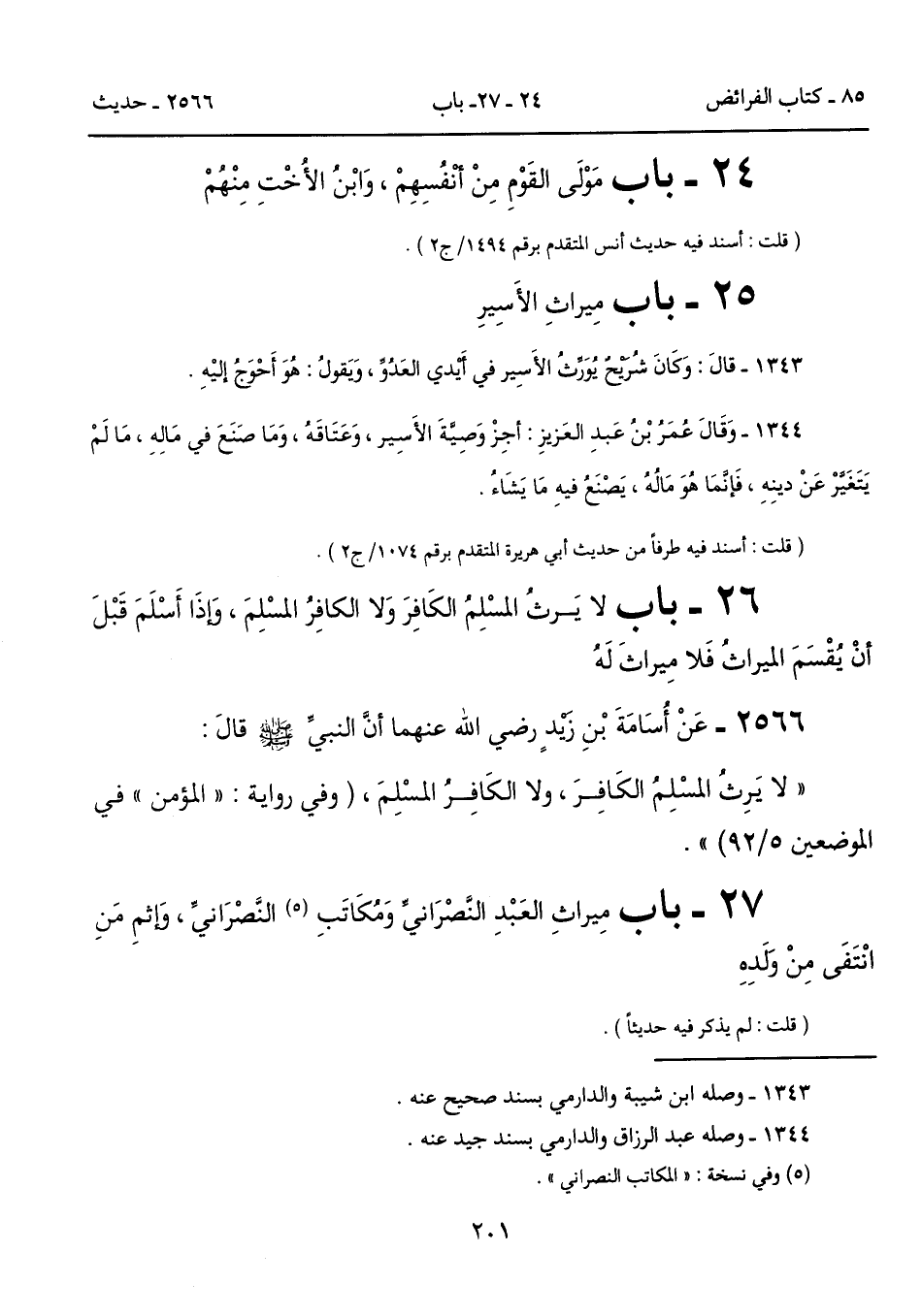 27 - باب مِيراثِ العَبْدِ النَّصْرَانى وَمُكَاتَبِ (5) النَّصْرَانيِّ، وَإثمِ مَنِ انْتَفَى مِنْ وَلَدِهِ