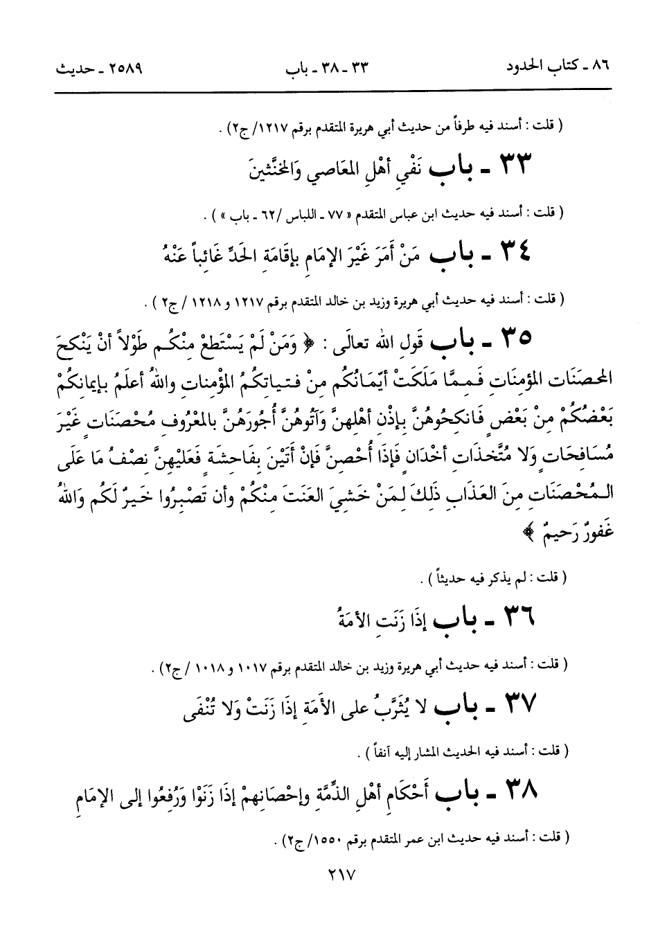 38 - باب أَحْكَامِ أهْلِ الذِّمَّةِ وإحْصَانِهمْ إذَا زَنَوْا وَرُفِعُوا إلى الإمَامِ