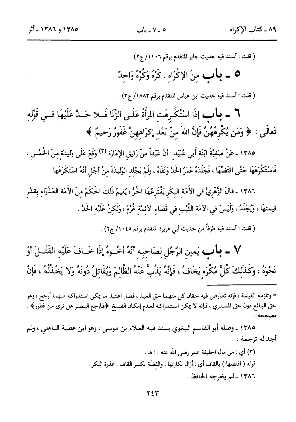 5 - باب مِنَ الإكْرَاهِ. كَرْهٌ وَكُرْهٌ وَاحِدٌ